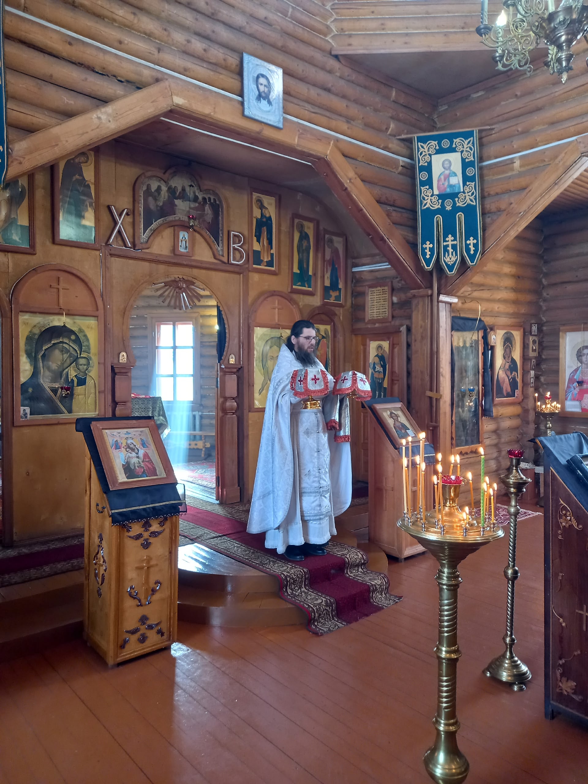 Литургию Преждеосвященных Даров в Храме Покрова Пресвятой Богородицы с. Ельцовка совершил настоятель Храма священник Евгений Большаков, на клиросе помогала матушка Наталья Большакова.