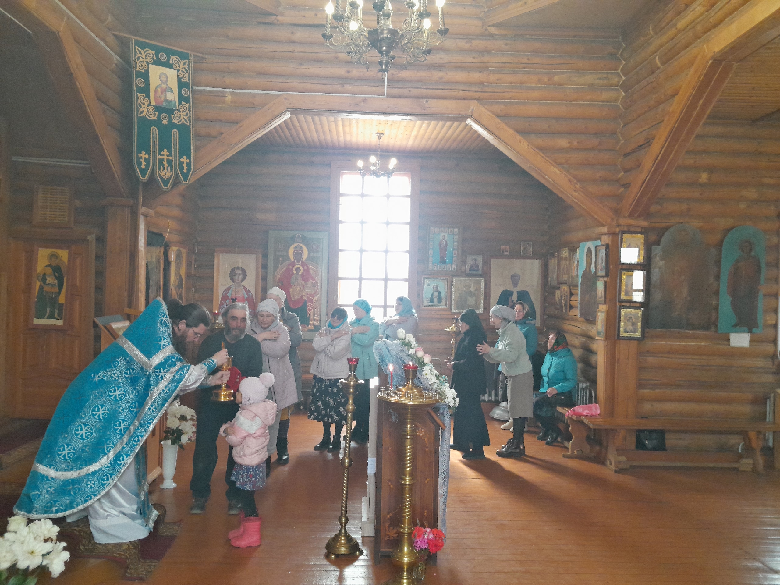 Службу совершил настоятель священник Евгений Большаков, на клиросе пела и читала матушка Наталья Большакова.